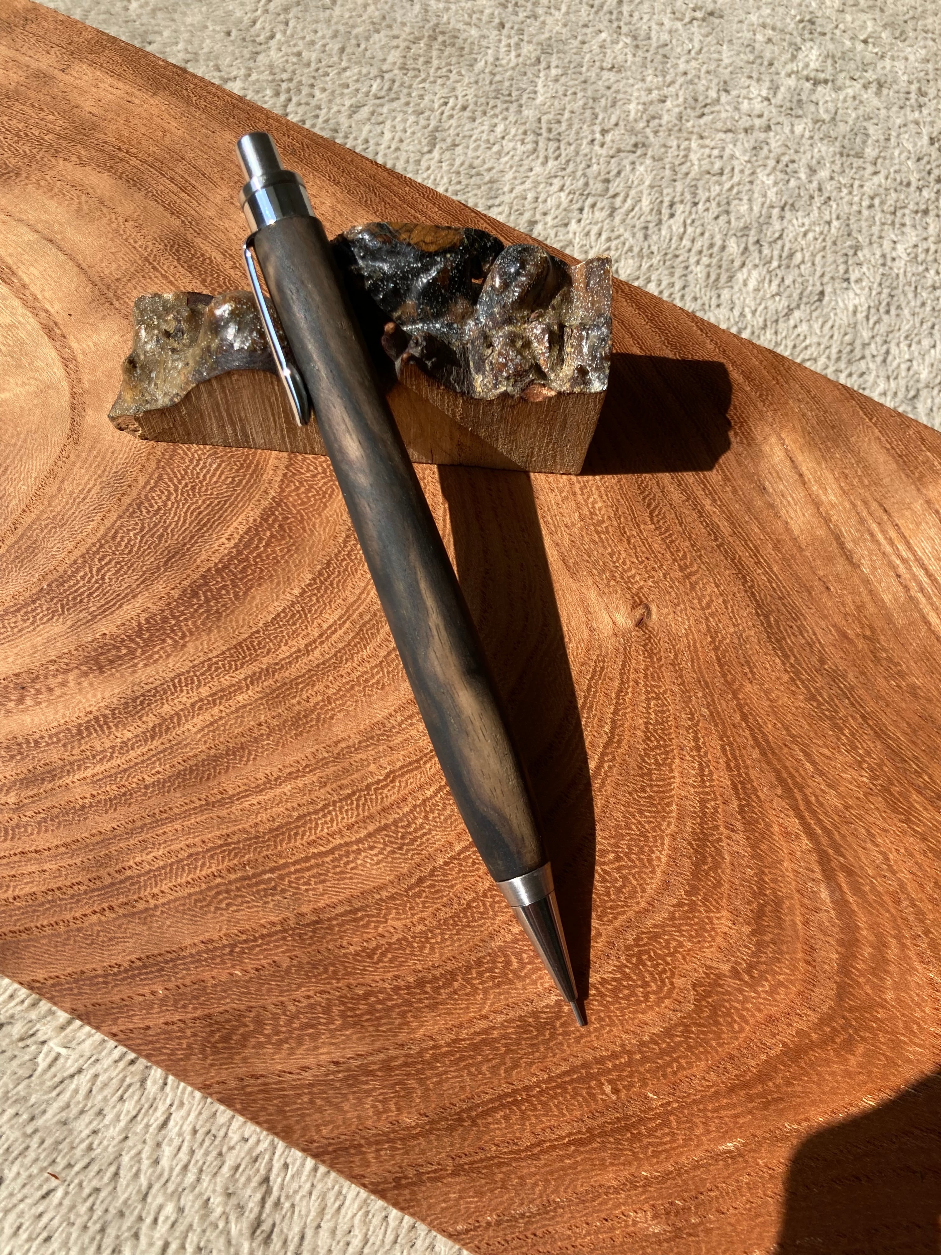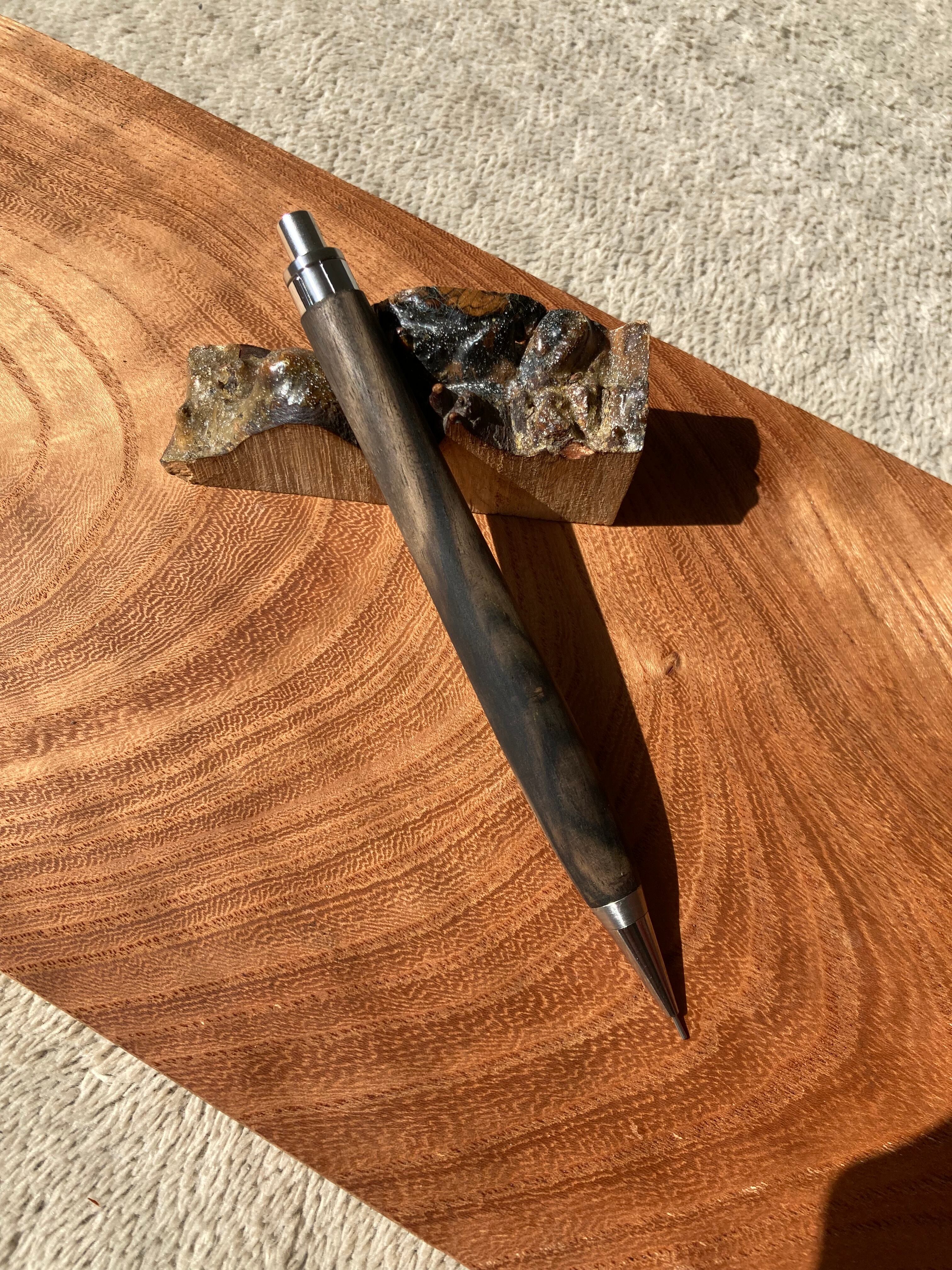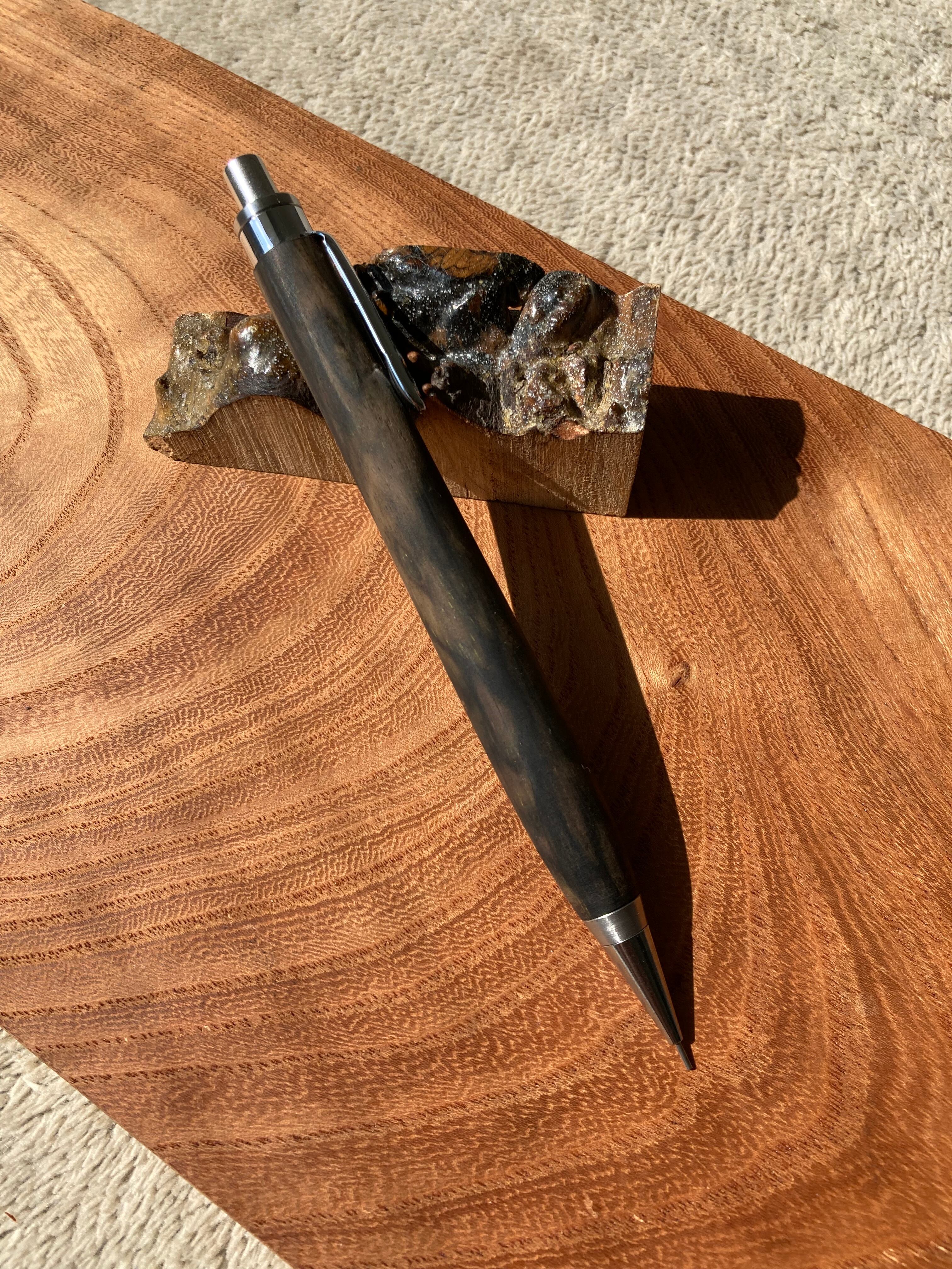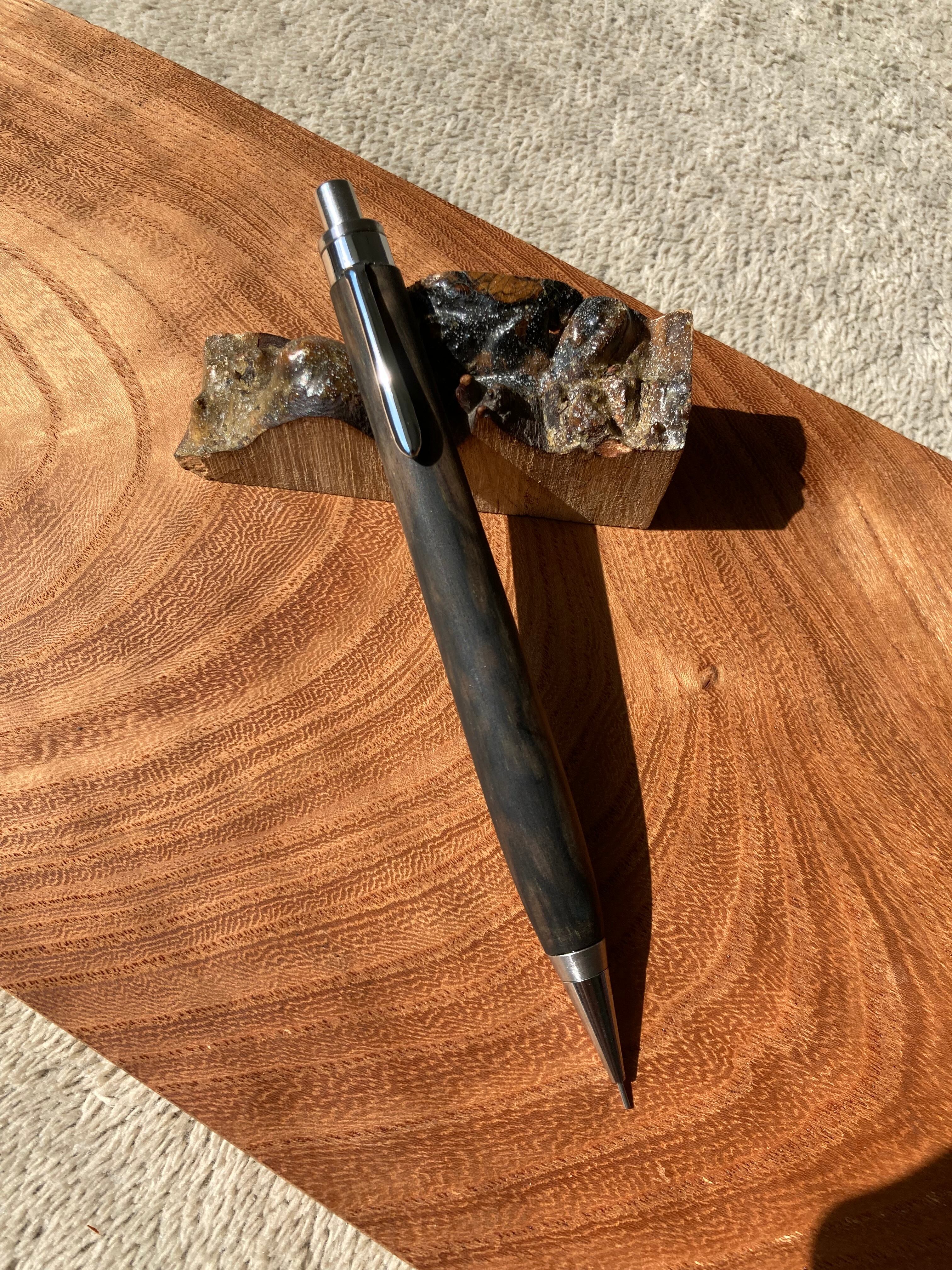 ・黒柿孔雀杢で作ったYI工房のシャーペンです。