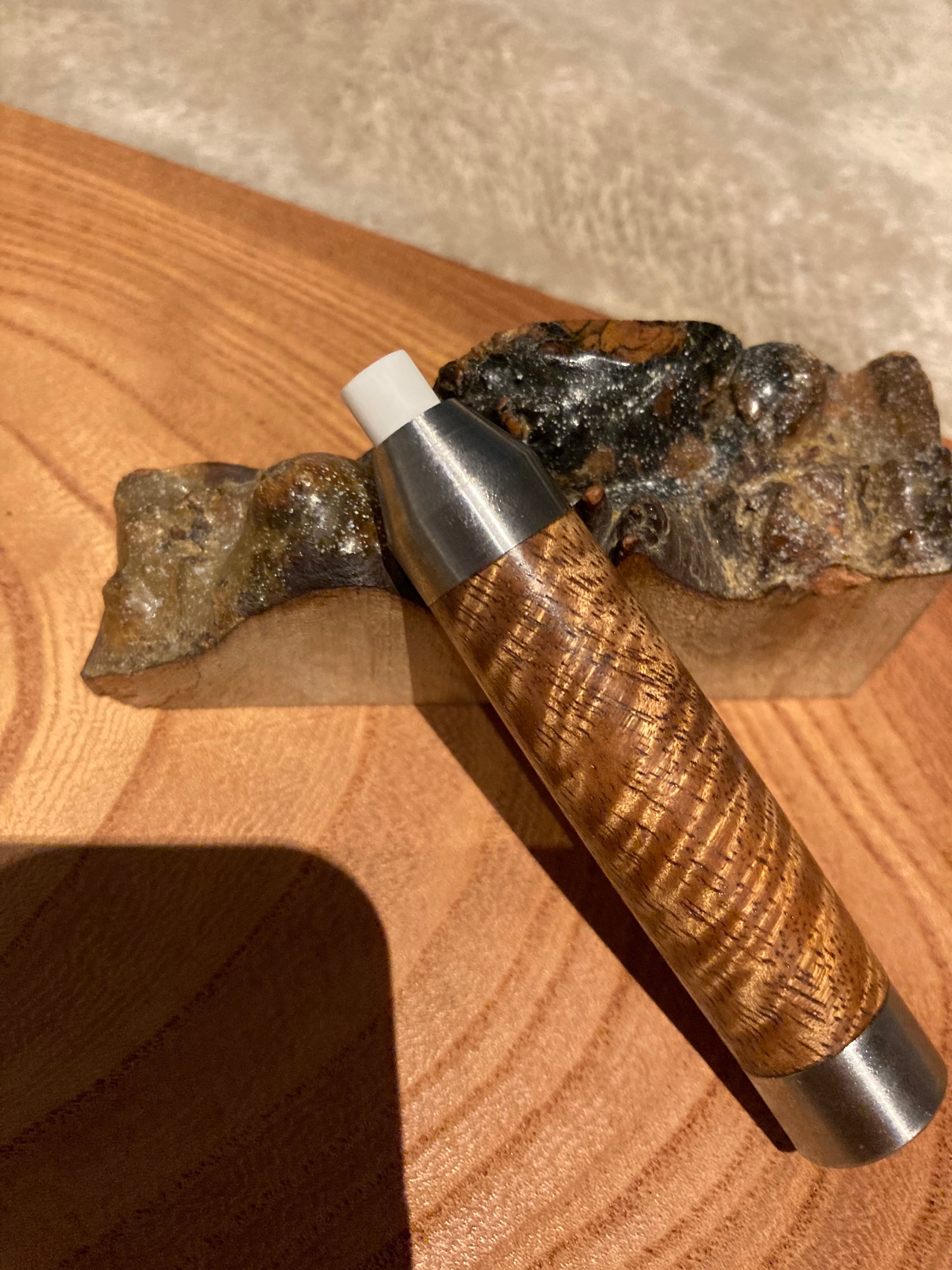 ・ハワイアンコアで作ったYI工房のツイスト式消しゴムです。ステンレス金具はSUS304を自分で削り出して製作しております。