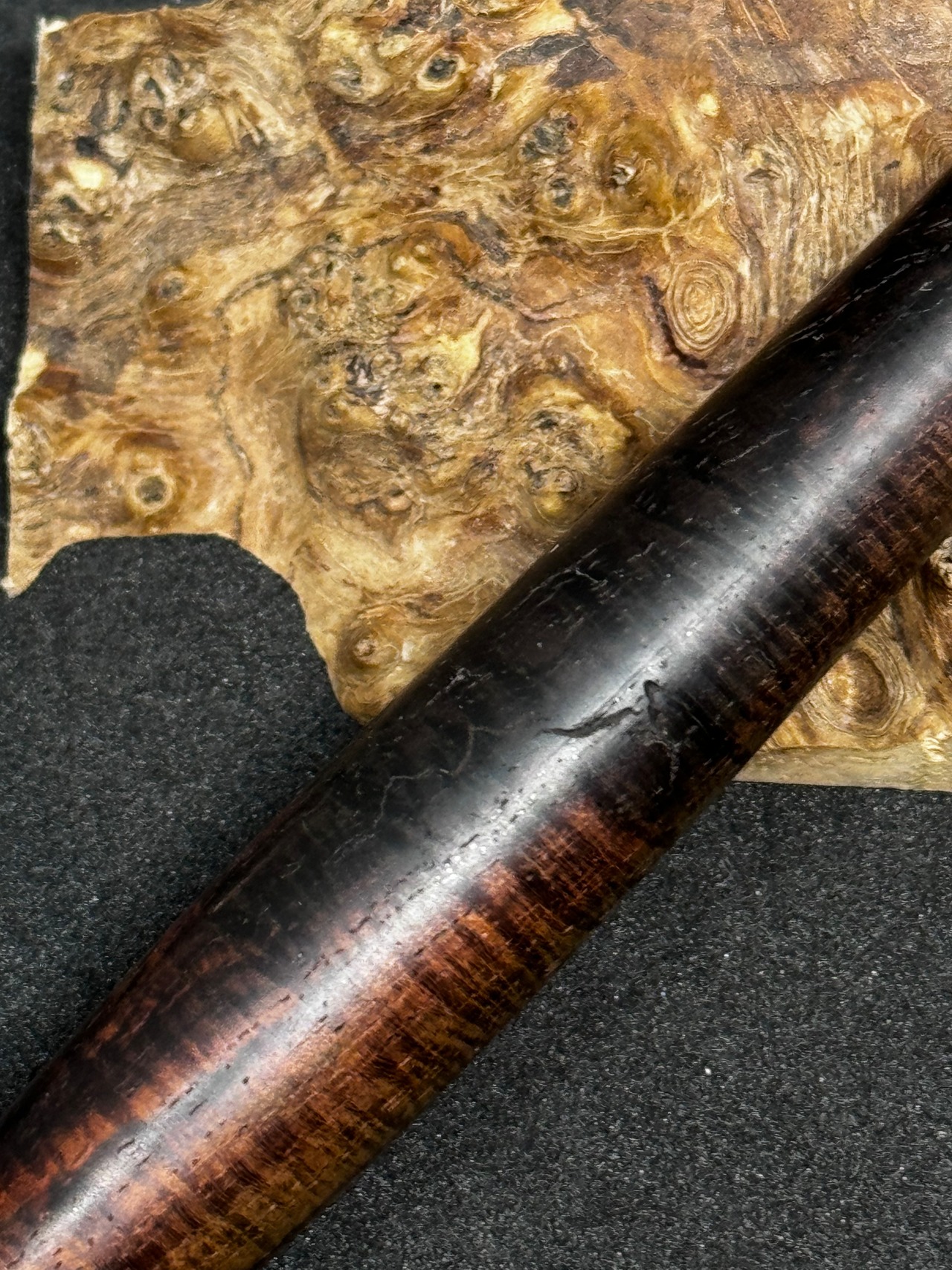 出来るだけいい杢を使って作っています。天然木を使用しておりますので、瘤特有の欠け、節、ヒビ、虫穴等があるかも知れませんが使用上問題はありません。末永く大切に使って頂けると幸いです。ご購入者様専用でお申し付けくださいましたら、ウッドキューブをお付けいたします。