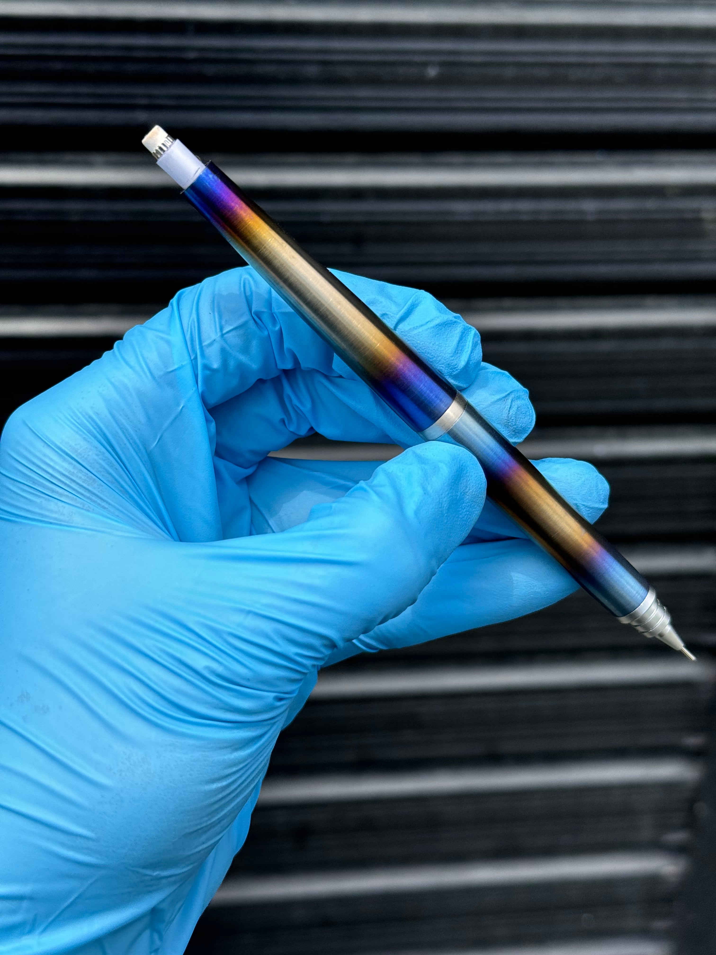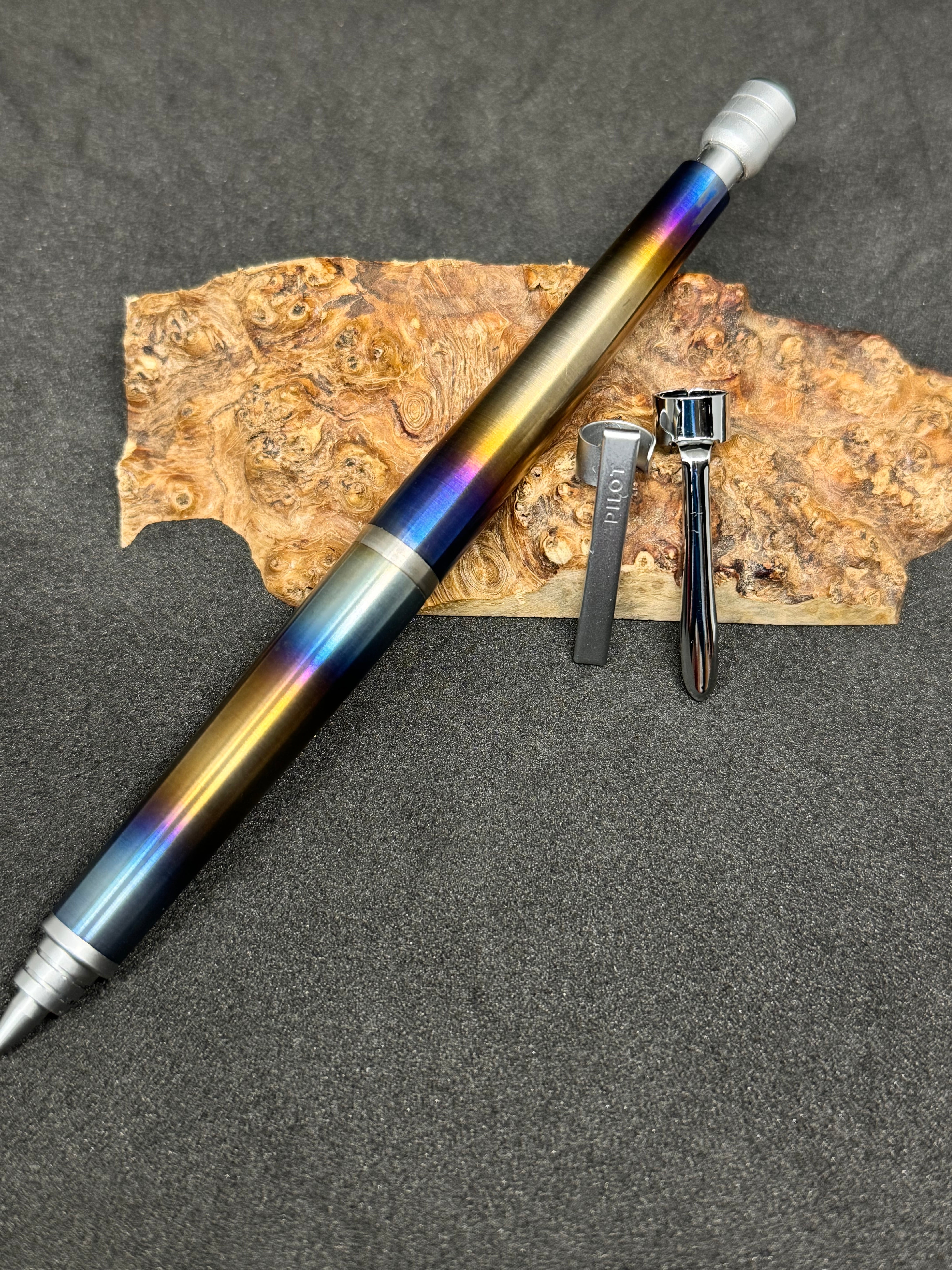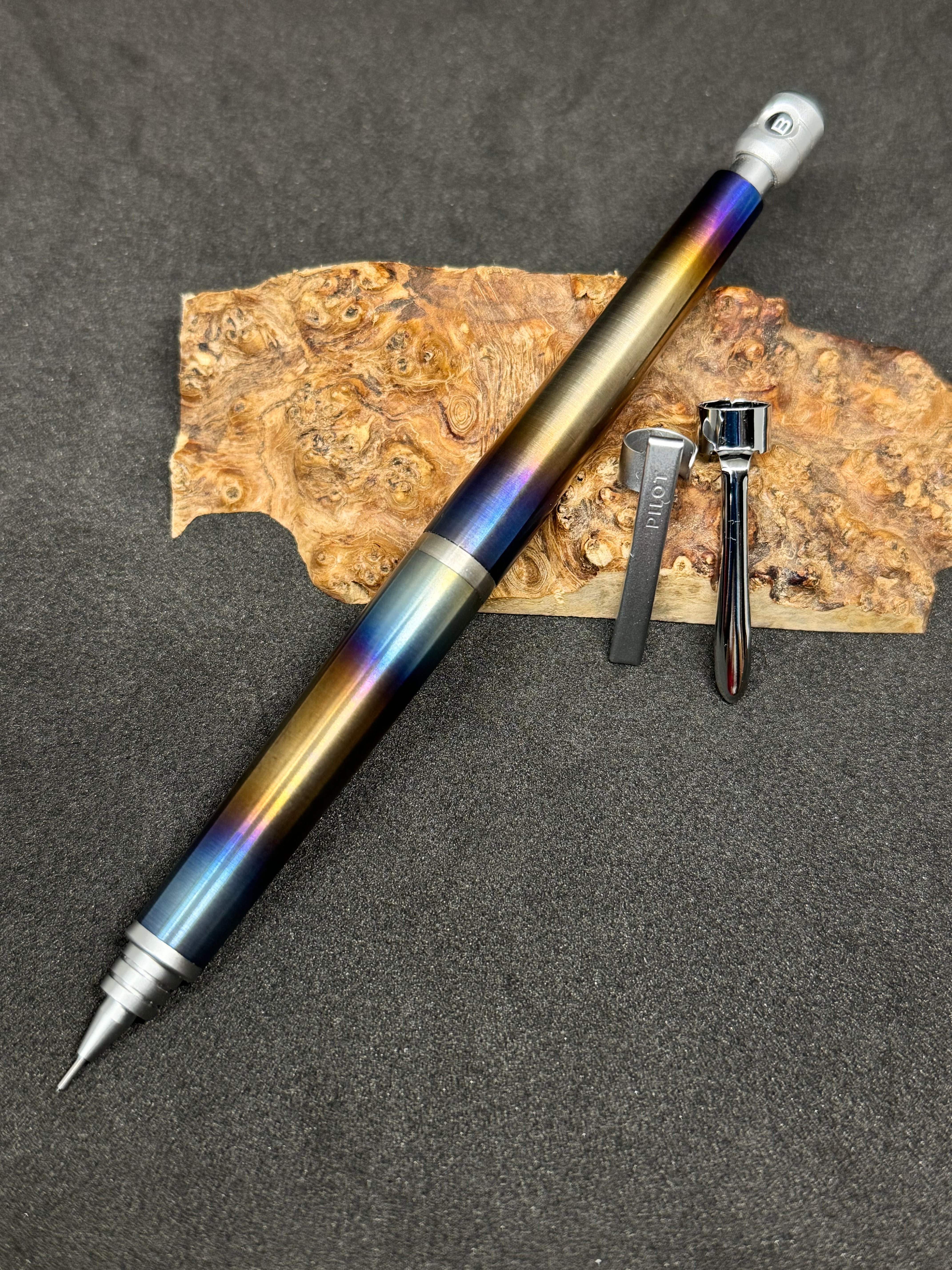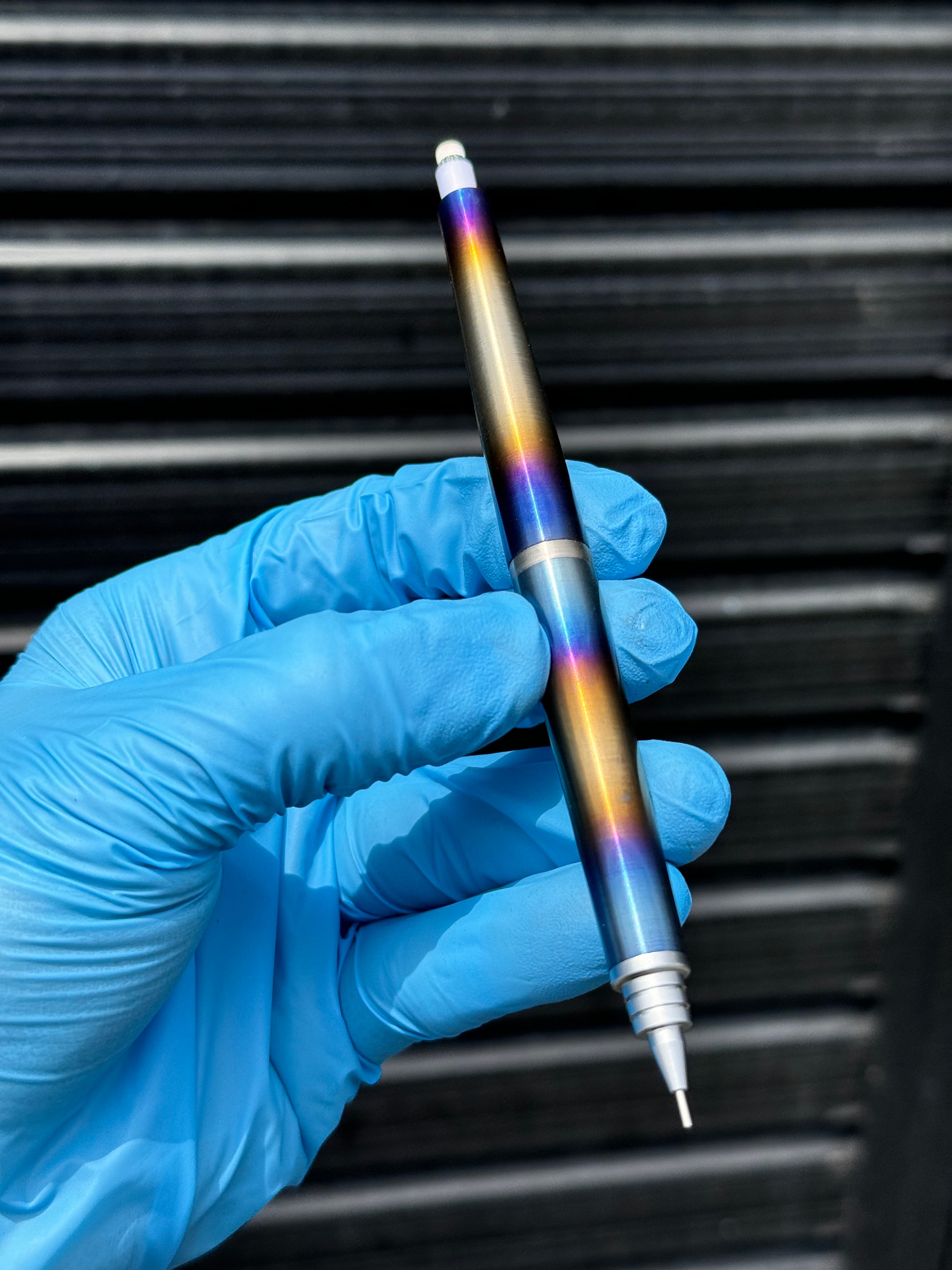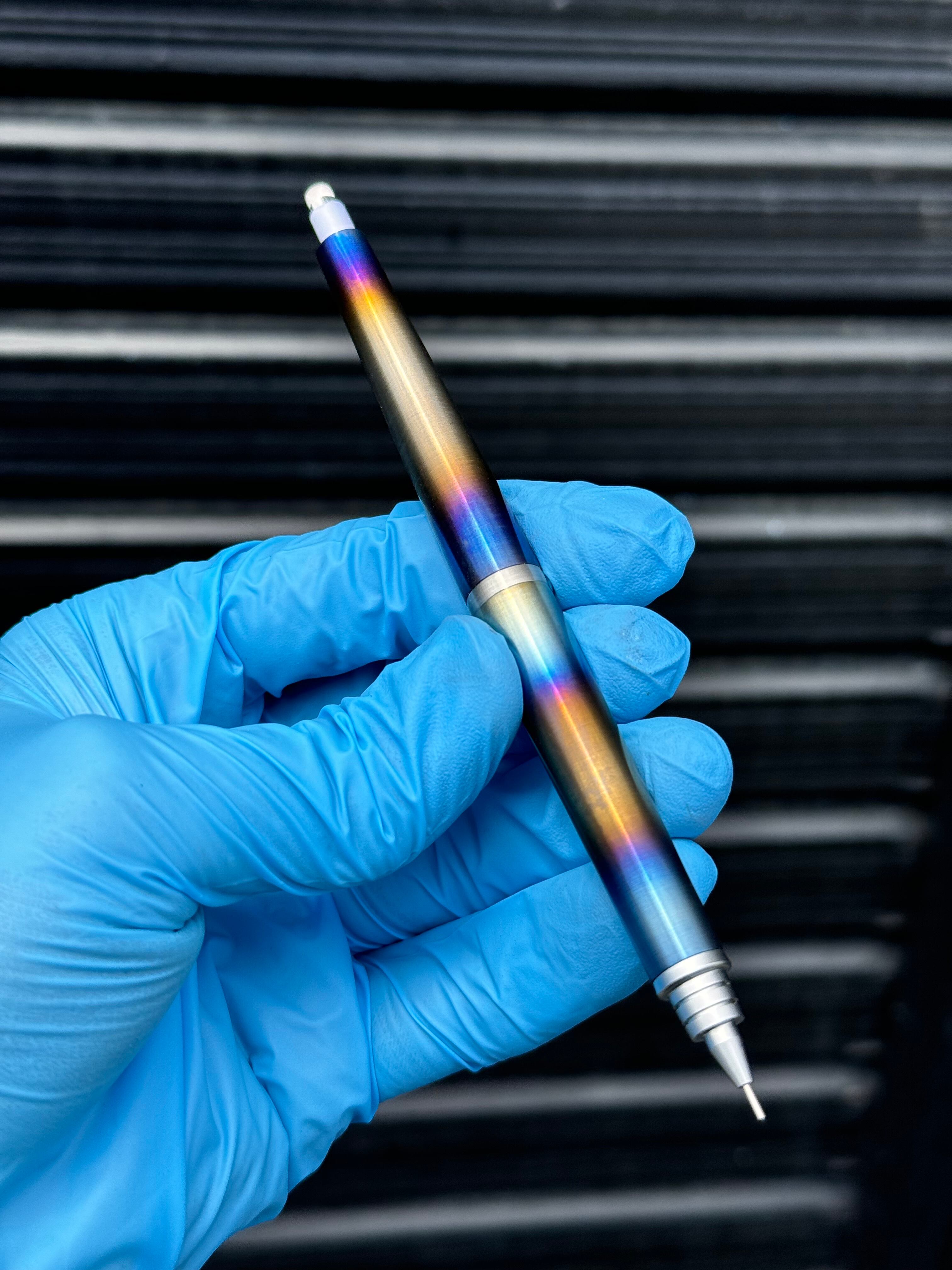 ・チタニウム【チタン】で作ったS20カスタムペンです。芯径0.5mmで御座います。職人がチタンを金属旋盤にて妥協せずに0.025mm単位で削り出し製作致しました。