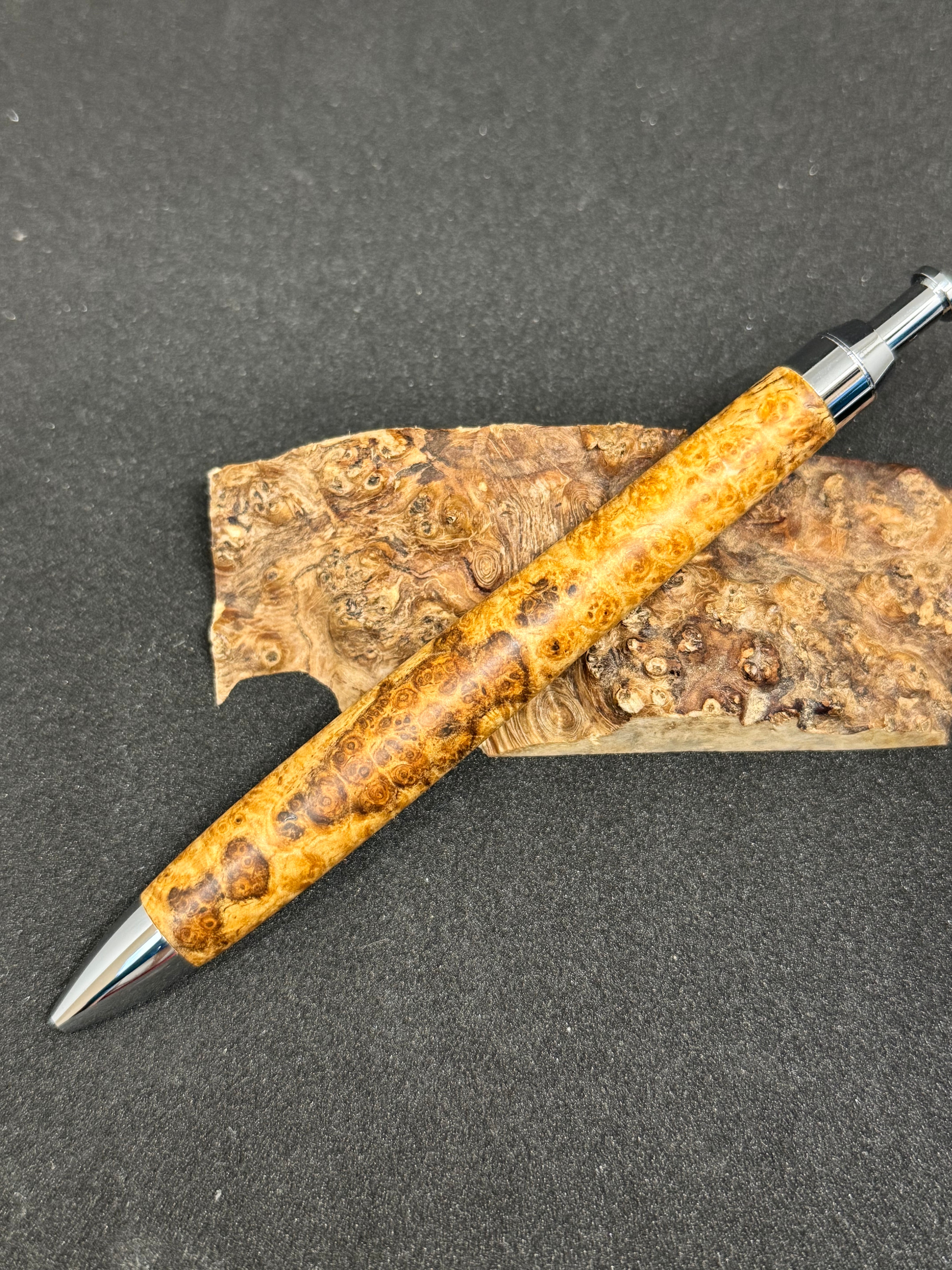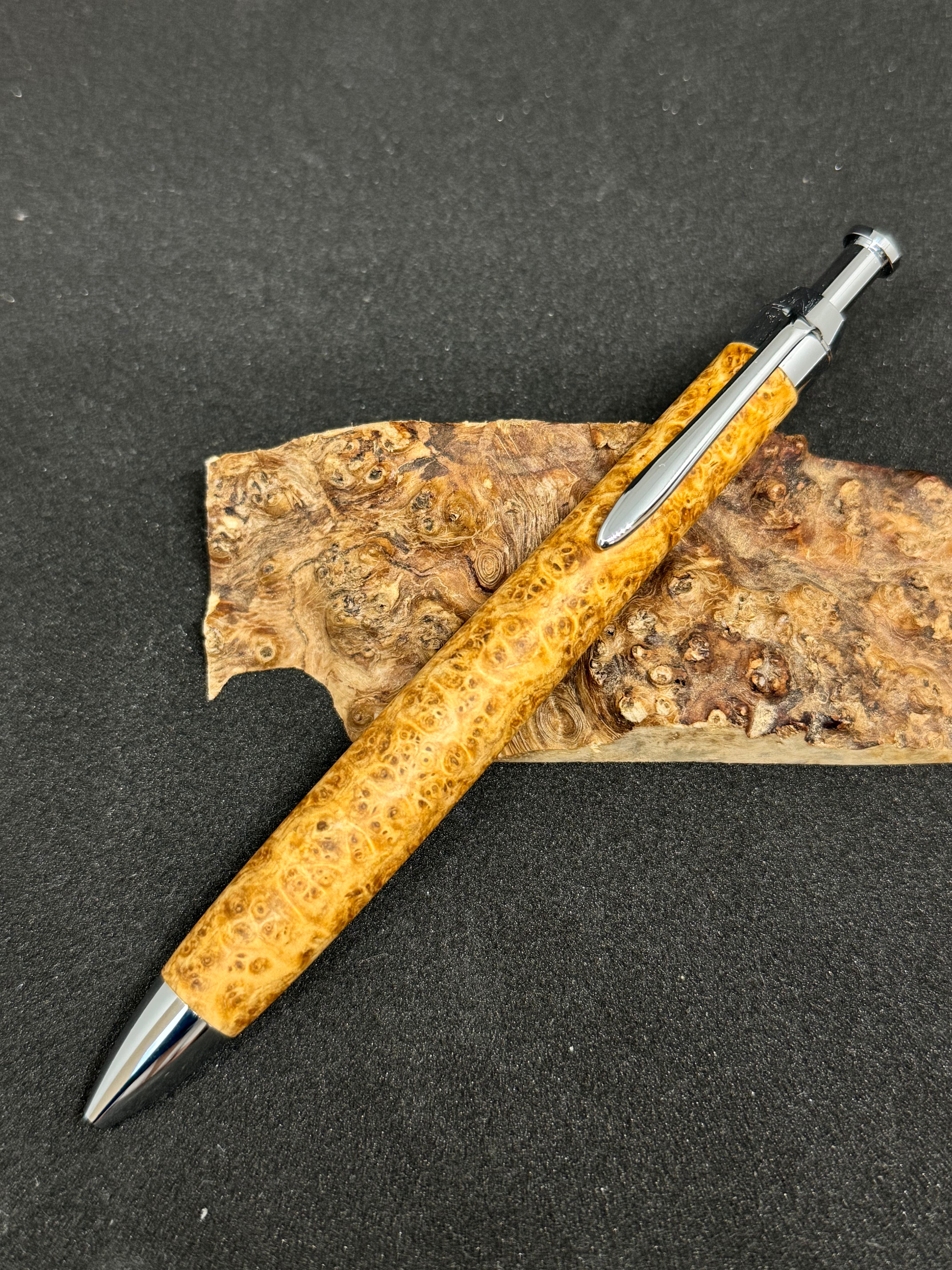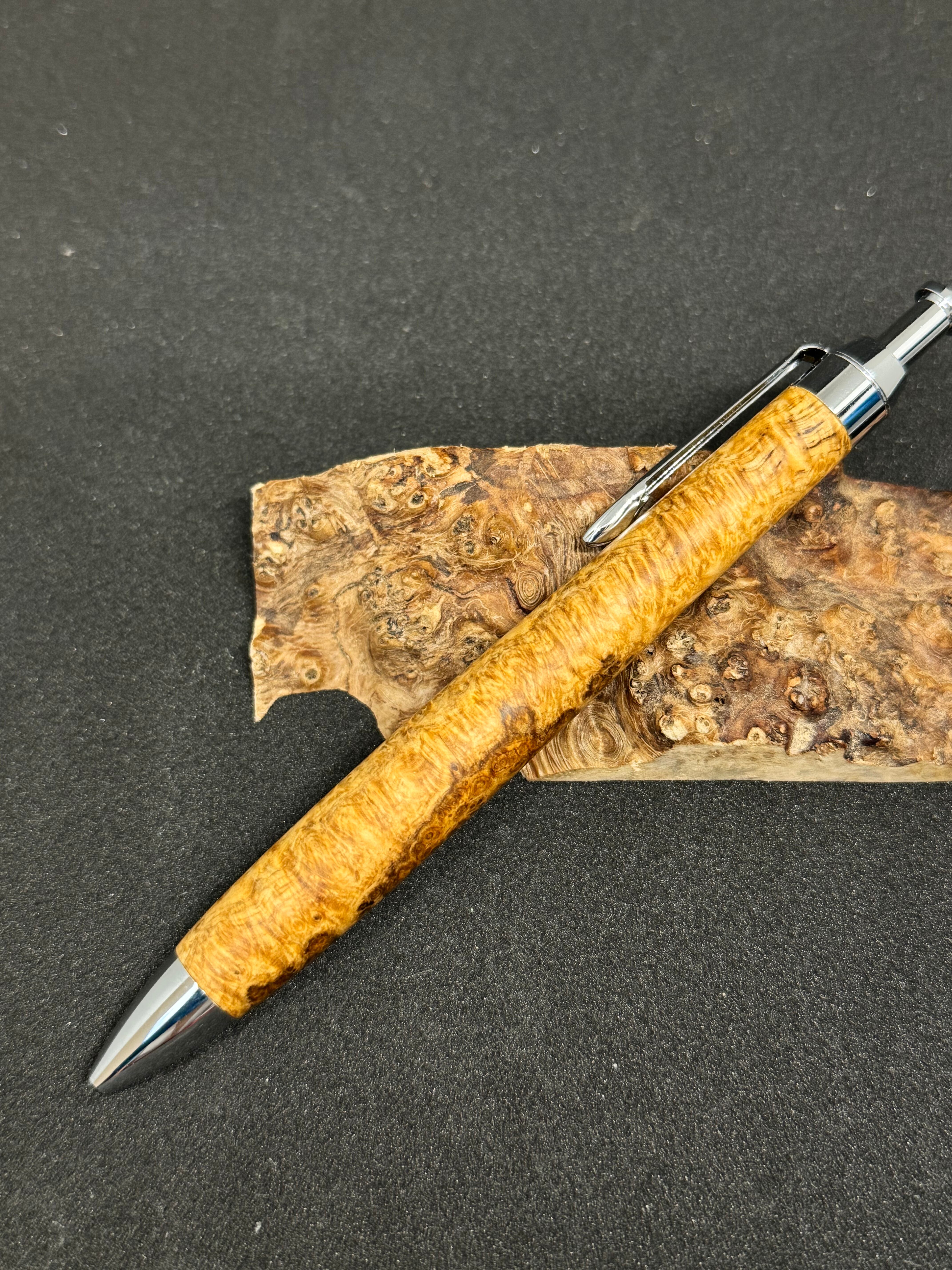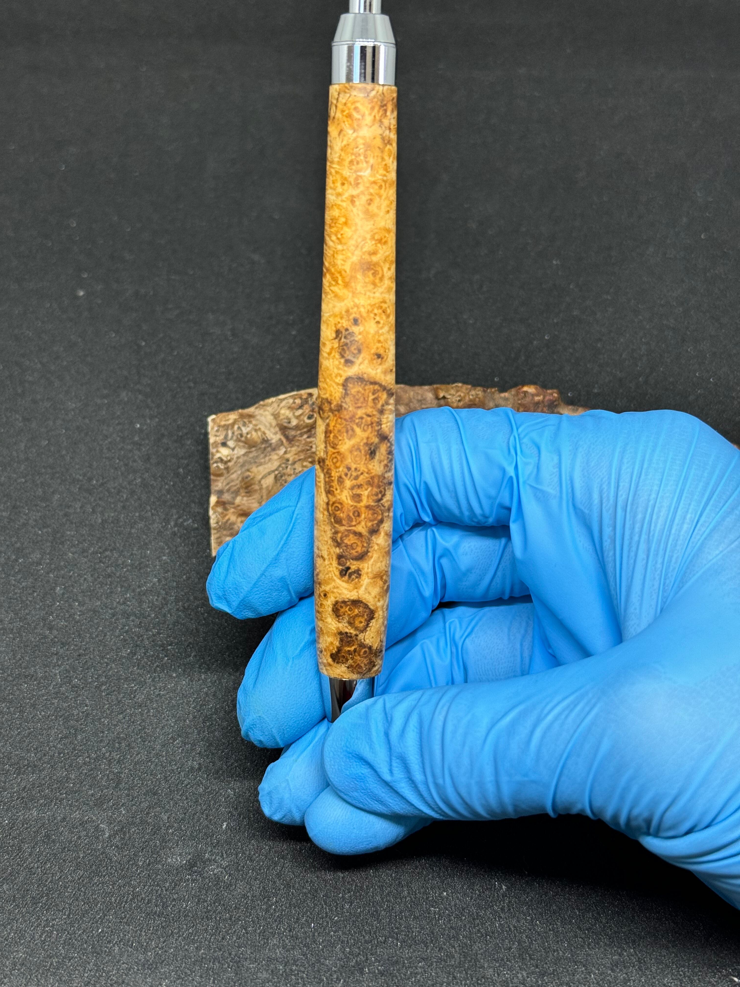 ・amboyna burlで作った木軸シャープペンシル「0.5mm」となっております。