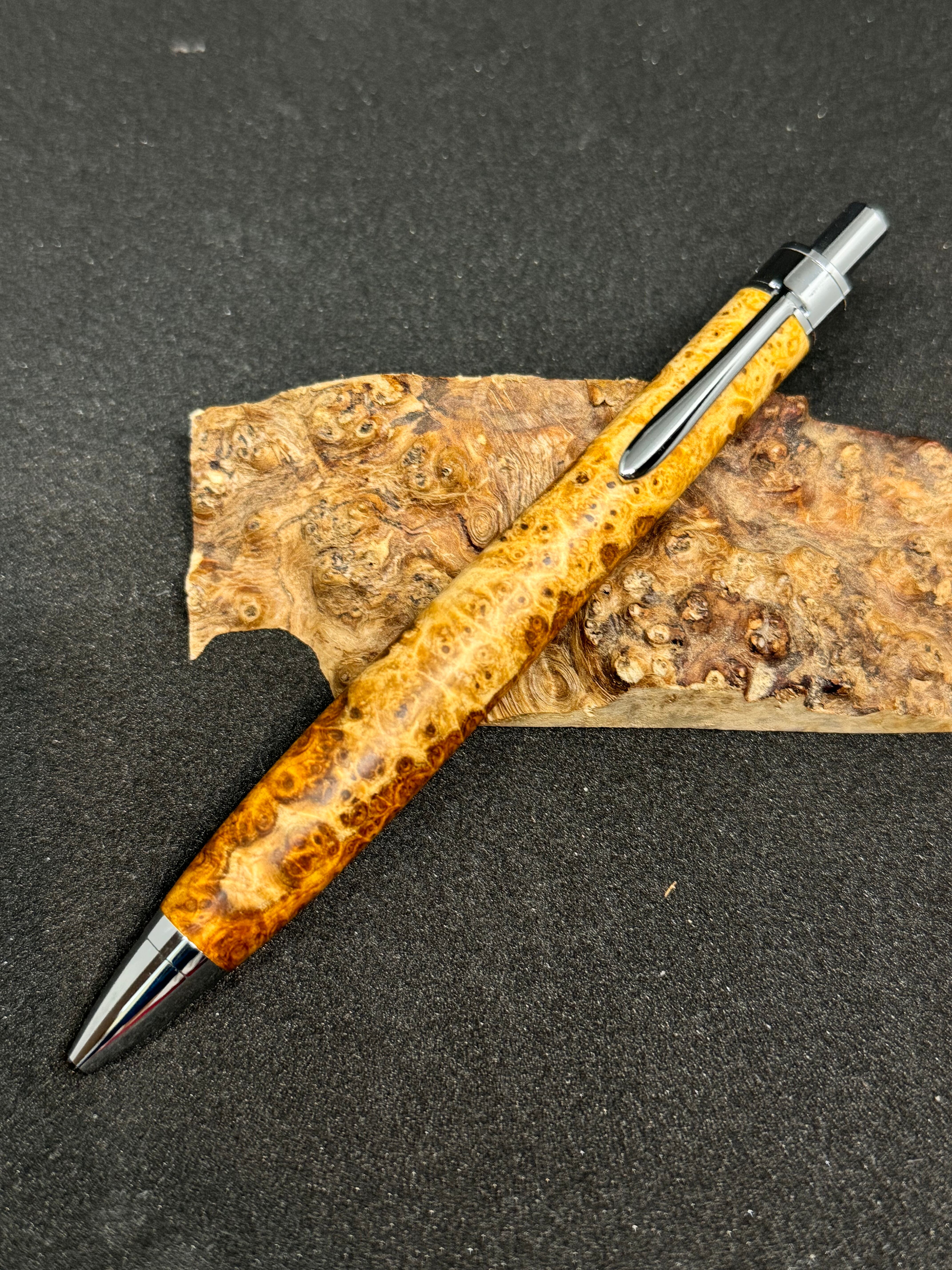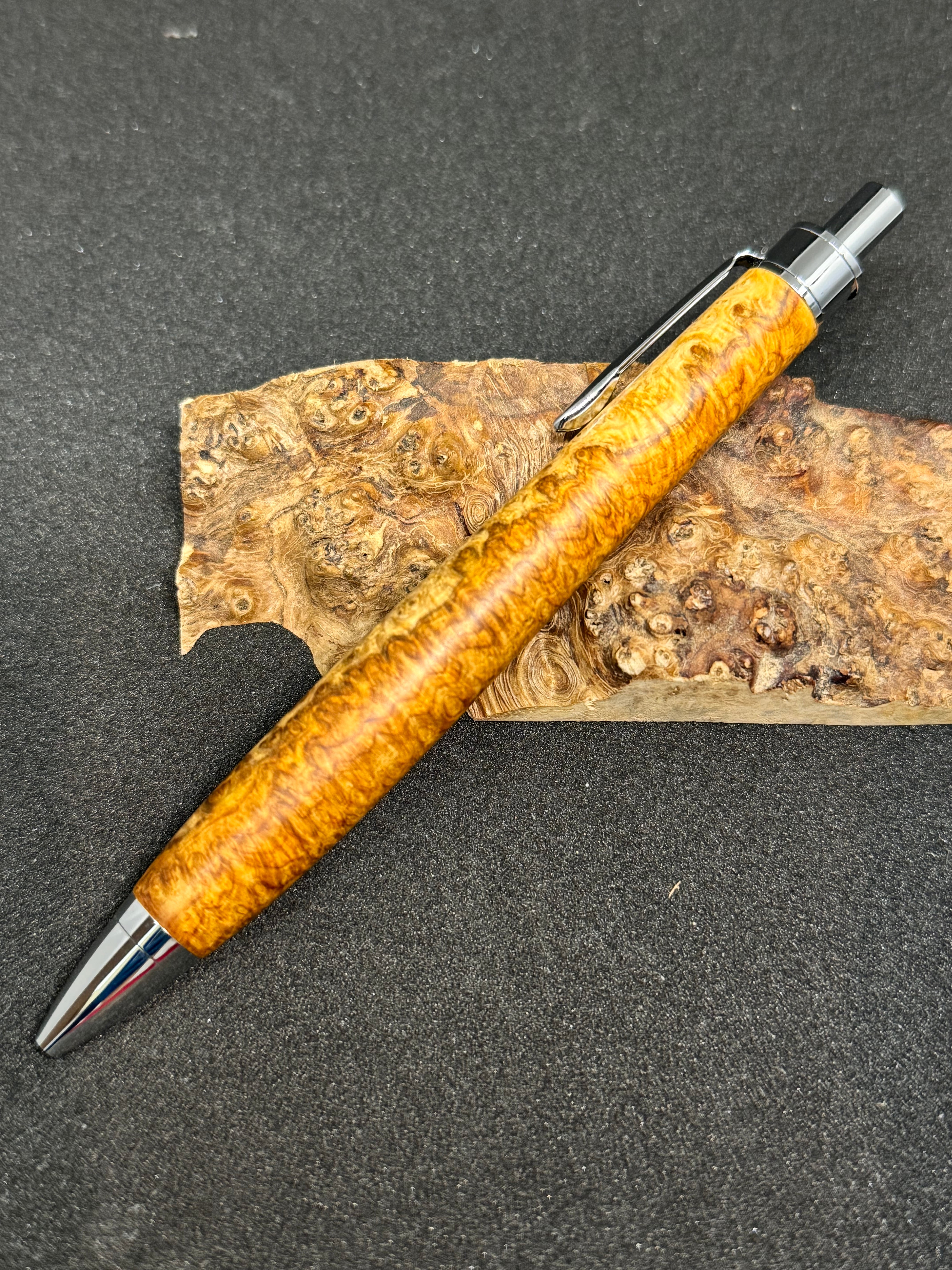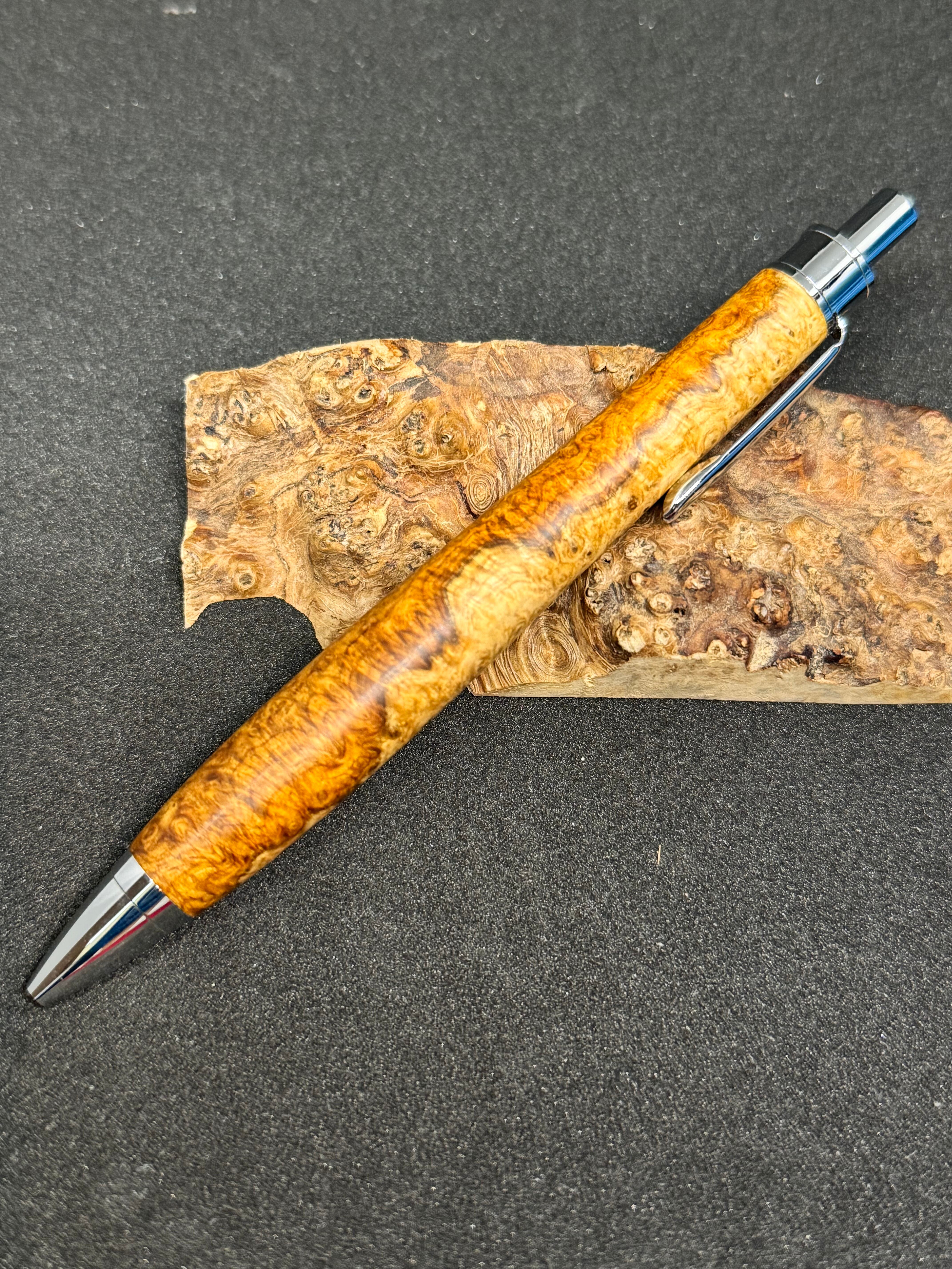 ・Amboyna Burlで作った木軸ペンとなっております。